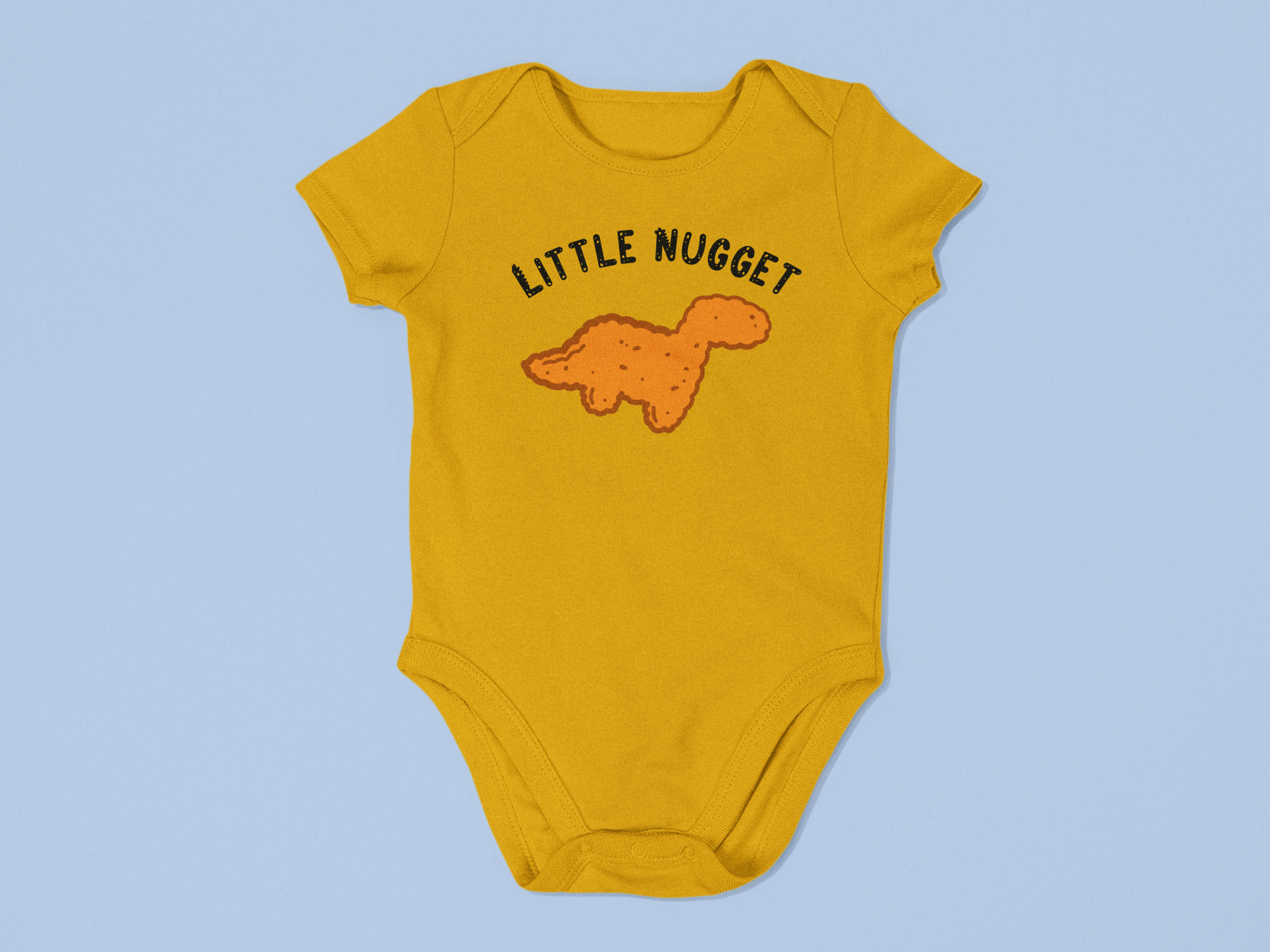 For the tiniest snack-lover in your life! Our Little Nugget Onesie features an irresistibly cute dino nugget illustration that brings a smile to everyone who sees it. Made from 100% polyester, this onesie is buttery soft, breathable, and built for snuggles, naps, and those first big adventures.